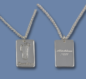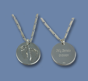 Auf der Vorderseite können Name geprägt werden, und auf der Rückseite bzw. Ringinnenseite können Namen, Botschaften und Geburtsdaten graviert werden.