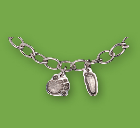 Die Hand- und Fußabdrücke Ihres Kindes werden in verkleinerter Form auf Ihr Lieblings-Silberstück verewigt. Hierbei könen Sie auch den Namen oder das Geburtsdatum integrieren oder Ihr Kind ist schon alt genug, dass es seinen Namen schon selbst schreiben kann.