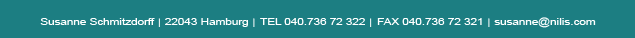 Susanne Schmitzdorff Mail: susanne@nilis.com Alle Fotos und Inhalte sind urheberrechtlich geschützt und dürfen nicht ohne Genehmigung, privat oder kommerziell in veränderter oder unveränderter Form |